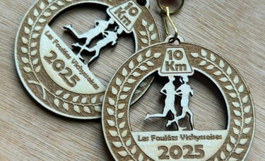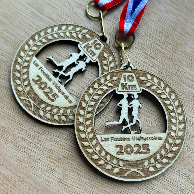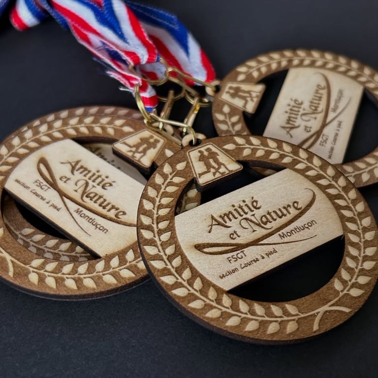 Je conçois et fabrique des médailles en bois sur mesure, alliant originalité, authenticité et respect de l’environnement. Chaque modèle est pensé pour s’adapter à l’image de votre événement, avec des designs personnalisés et une fabrication soignée. Que ce soit pour une course, une compétition ou un tournoi, offrez un souvenir unique et marquant à vos participants.
