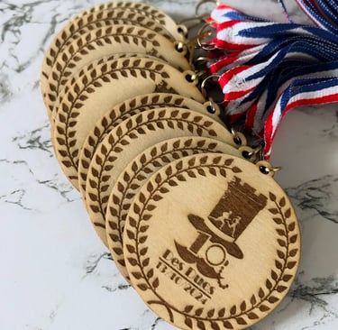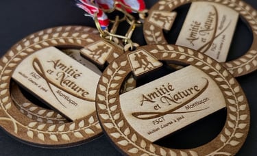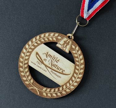 Fabrication de médailles en bois pour les évènements et manifestions sportives.
