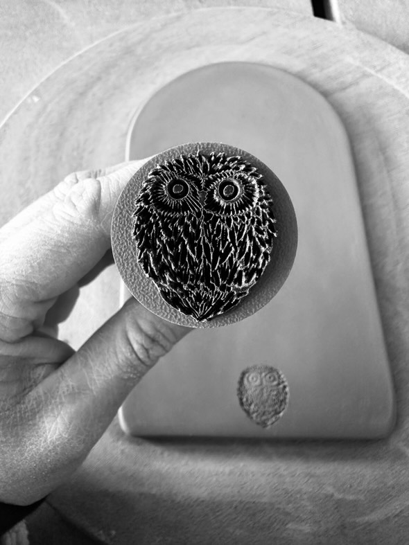 Fabrication d'un tampon à céramique personnalisé en acrylique gravé au laser.