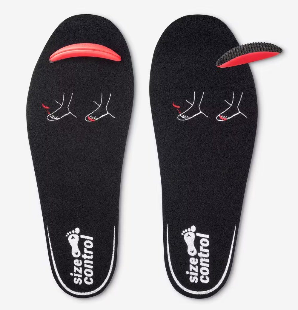 La semelle intérieure est conçue pour s’adapter à différentes pointures grâce à un système de cale réglable. Ce mécanisme ingénieux permet d’ajuster la chaussure afin d’accueillir jusqu’à trois tailles différentes, offrant ainsi un confort optimal et une plus grande durée d’utilisation.