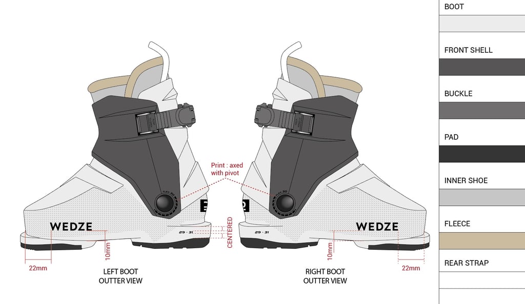 Design d'une paire de chaussure de ski enfant multi-tailles.