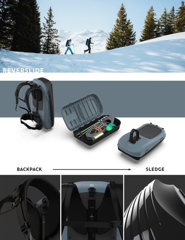 Le sac à dos luge Reverslide 900 est né de l’ambition de proposer une nouvelle expérience de glisse, au-delà des pistes traditionnelles sur le front de neige, en combinant deux activités : la randonnée en raquettes et la descente en luge.
