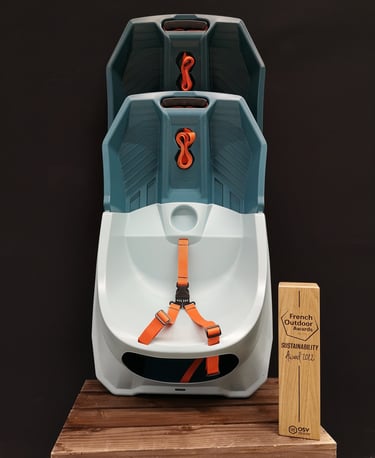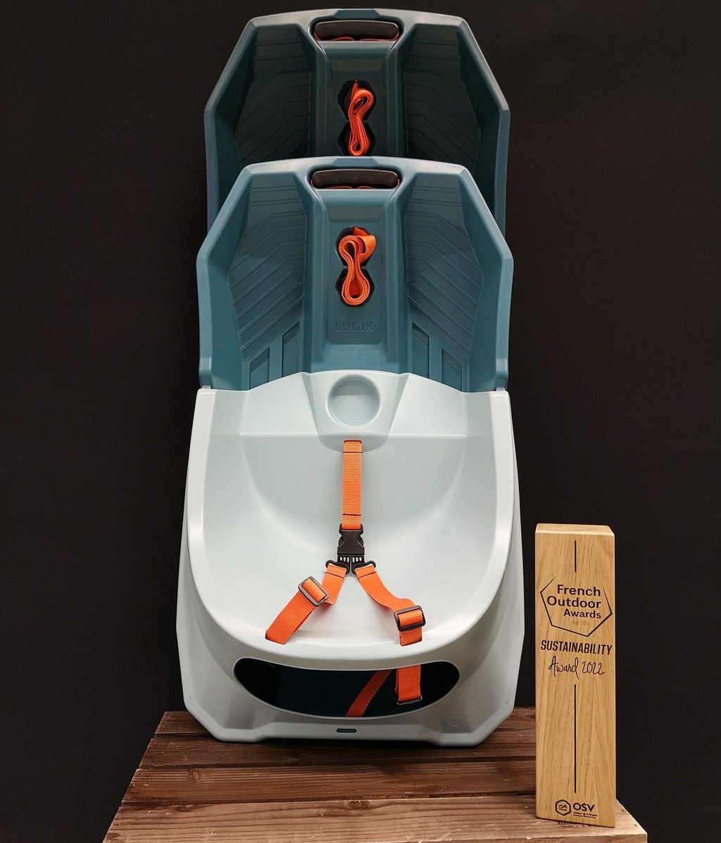Entièrement réparable et fabriquée en France à base de plastique recyclé, la luge Trilugik à été récompensé aux French Outdoor Awards 2022 par le prix de l'éco-conception.